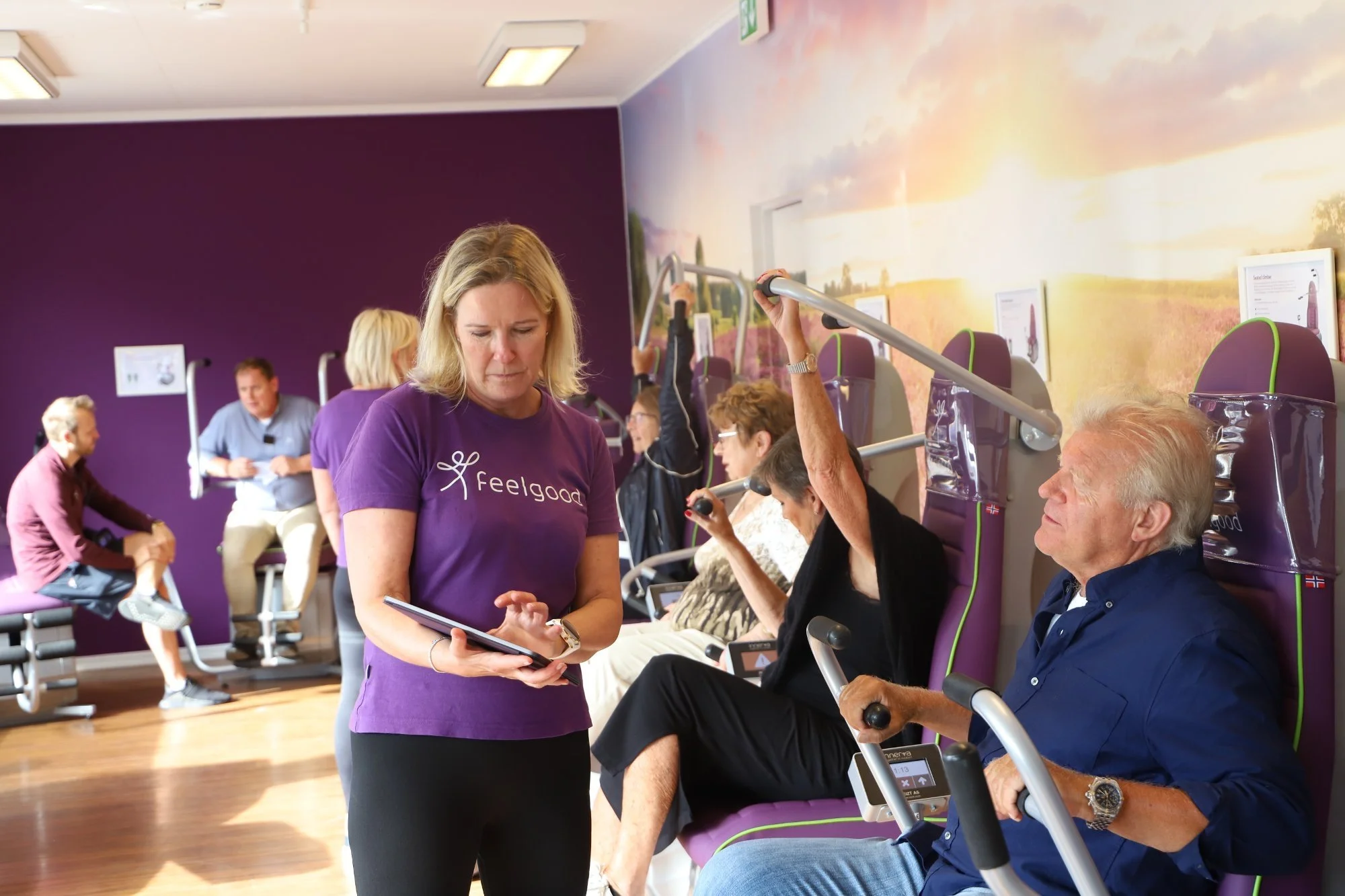 Feelgood baserer seg på tolv motoriserte treningsmaskiner fra Shapemaster. Maskinene drives av motor og ikke bare av egen muskelkraft – slik kan du trene både aktivt eller passivt ut fra dine behov.